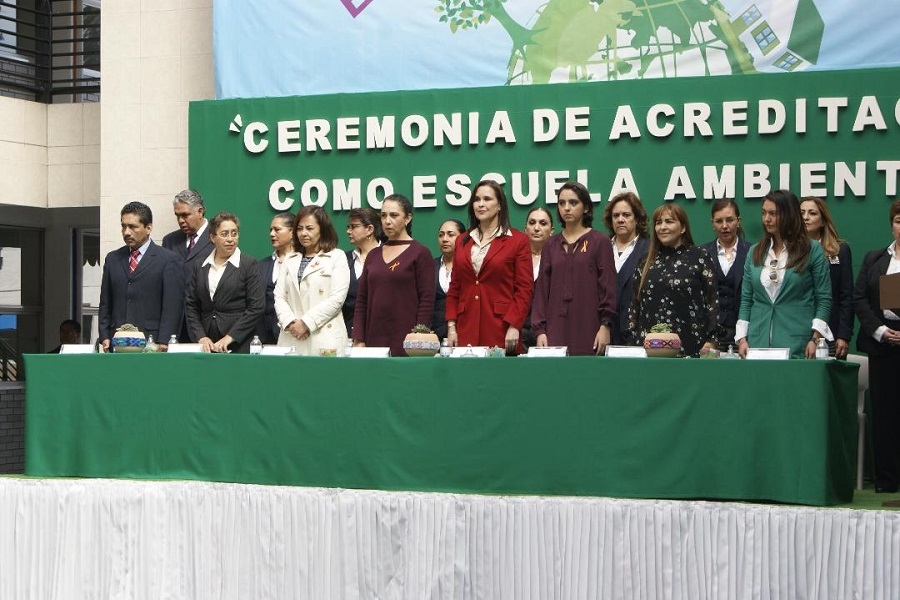 Durante la ceremonia cívica, la Presidenta Municipal, síndicos, regidores y funcionarios del Ayuntamiento abanderaron a 27 escoltas de instituciones educativas, del Colegio de Enfermería Liceo de Occidente y del Heroico Cuerpo de Bomberos de Naucalpan.
