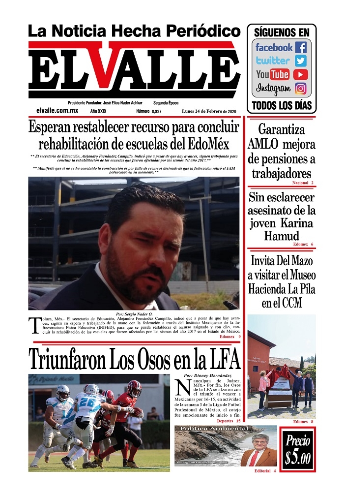Alfredo Del Mazo recordó que la entidad que mayor afectación sufrió de todo el país fue el Estado de México, teniendo más de 4 mil 900 escuelas dañadas por el sismo, pero gracias a que junto con el esfuerzo de los maestros, padres de familia y autoridades educativas, se logró que en pocos meses los alumnos nuevamente estuvieran tomando clases, al reconstruir las aulas o habilitar espacios temporales de municipios, casas de cultura, y otras escuelas, para que no perdieran el ciclo escolar; y después de un poco más de dos años, se ha logrado intervenir más del 95 por ciento de todas las escuelas que se vieron afectadas con ese sismo.