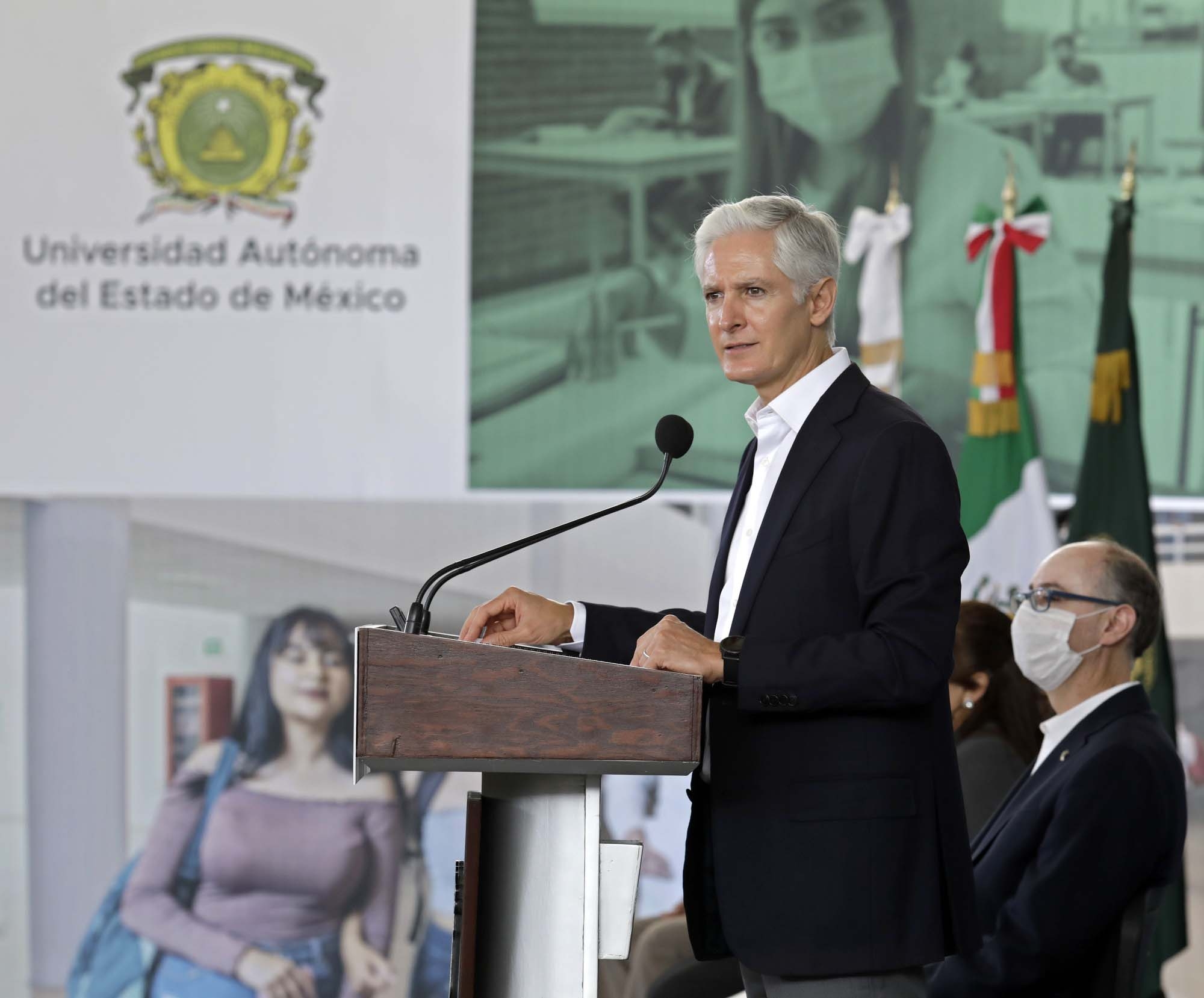 Ante los integrantes del Gabinete Universitario, del Colegio de Directores, alumnas, alumnos y docentes, Alfredo Del Mazo apuntó que esta Universidad es parte fundamental de la historia y del desarrollo de la entidad, porque sus aportaciones a las ciencias, a las artes y al saber han servido como inspiración a las generaciones más jóvenes e impulsan el bienestar y las oportunidades de las familias.