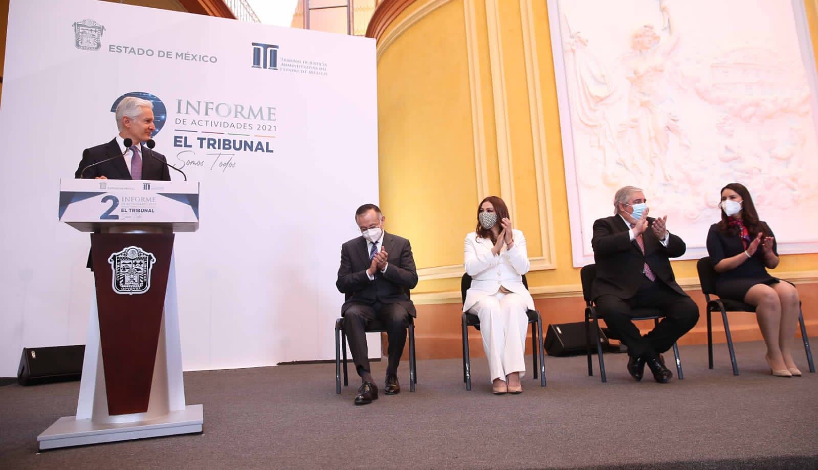Toluca, Méx.- Al asistir al Segundo Informe de Actividades de la Presidenta del Tribunal de Justicia Administrativa del Estado de México, el gobernador de la entidad, señaló que en la justicia radica el origen de toda desigualdad, por lo que la legalidad, determinación y voluntad de cambio que caracteriza a este Tribunal son aliados para recuperar y superar los desafíos, ya que además de consolidar el liderazgo en materia de modernización y de buenas prácticas gubernamentales, aseguró que harán de la igualdad en el acceso a la justicia una palanca para el desarrollo.