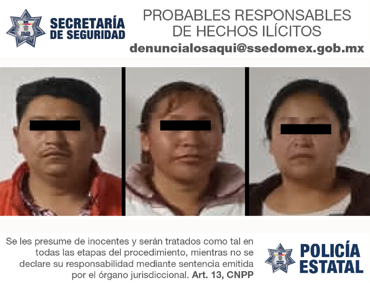 La Secretaría de Seguridad le recuerda que los teléfonos 089 Denuncia Anónima y 9-1-1 Número de Emergencias trabajan las 24 horas del día. Puede contactarnos a través de las redes sociales: Facebook @SS.Edomex, y en Twitter @SS_Edomex.