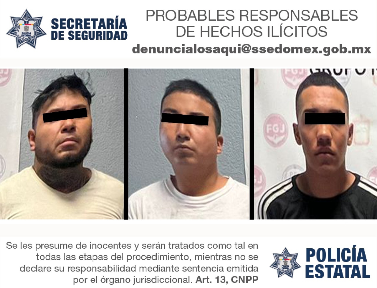 La Secretaría de Seguridad le recuerda que los teléfonos 089 Denuncia Anónima y 9-1-1 Número de Emergencias trabajan las 24 horas del día. Puede contactarnos a través de las redes sociales: Facebook @SS.Edomex, y en Twitter @SS_Edomex.