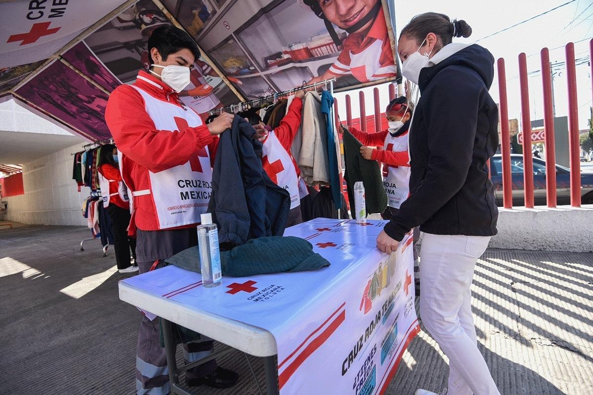 Toluca, Méx.- Por vez primera, fue puesto en marcha en Toluca el programa denominado “Cruz Roja te Abriga”, que consiste en acopiar prendas abrigadoras de vestir, como suéteres, chamarras, sudaderas o sacos, que serán clasificadas y desinfectadas para después ponerlas a disposición de la sociedad en general y, quien lo necesite, se pueda llevar hasta dos piezas por persona.