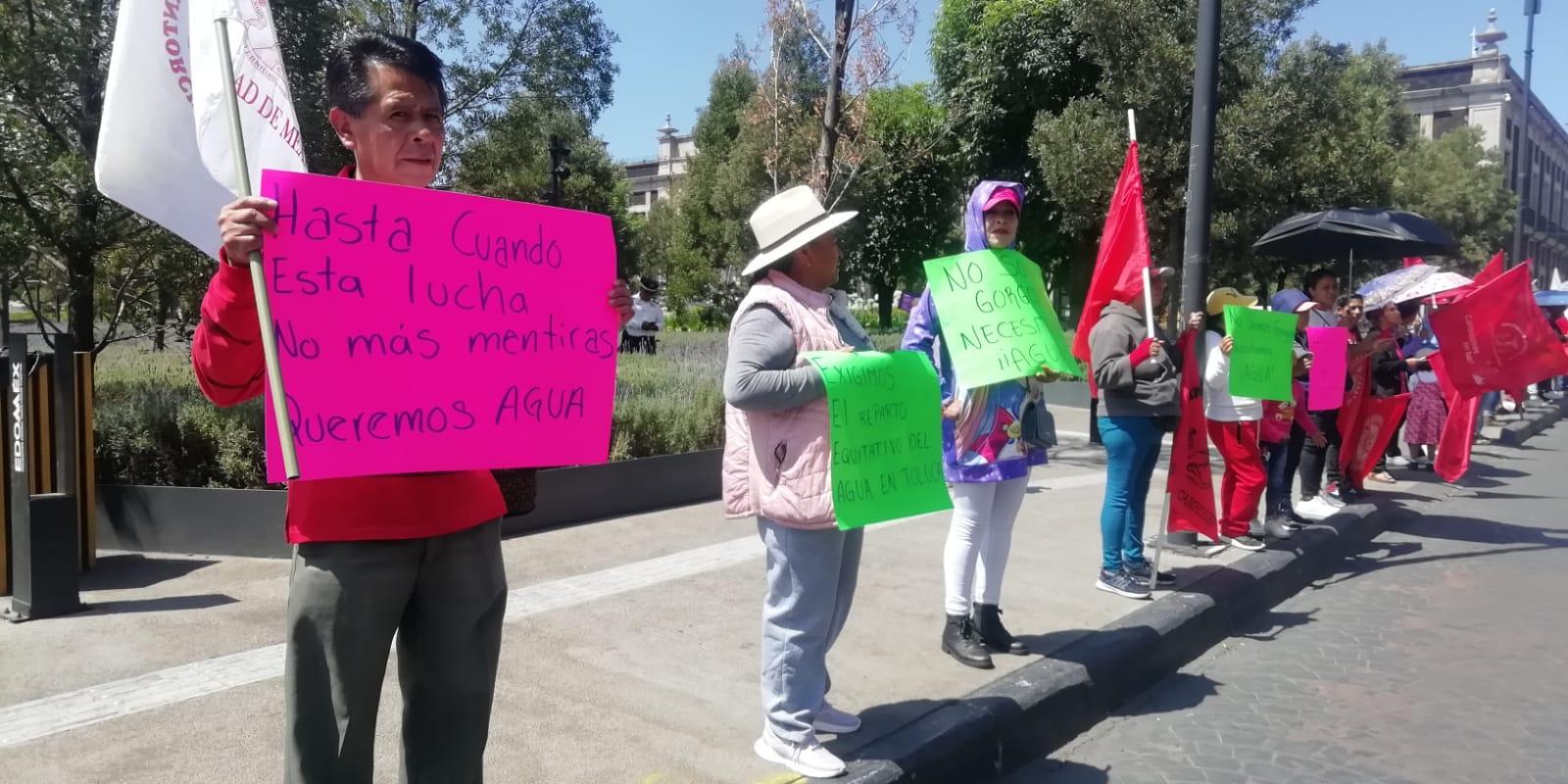 “Basta de mentiras”, “queremos agua”, “no a los cortes programados”, “el agua no es un negocio, es un derecho”, fueron algunas de las consignas que lanzaron los ciudadanos, quienes con la realización de una cadena humana frente al Palacio de Gobierno mexiquense para que las autoridades atiendan la problemática que padecen miles de mexiquenses. Y es que comunidades enteras se enfrentan a la falta de acceso a agua potable, lo que pone en peligro la salud y el bienestar de miles de personas.