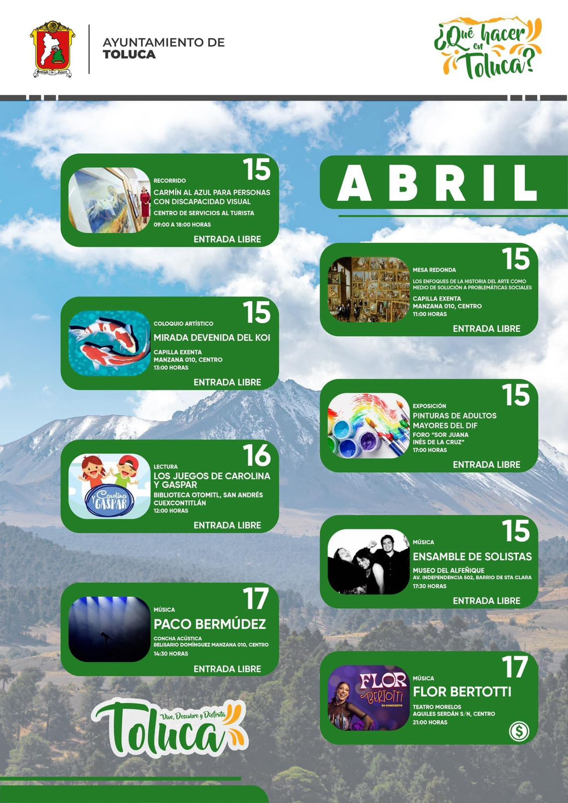 Con la intención de impulsar los sueños de nuevos artistas, la Secretaría de Cultura y Turismo invita a las interesadas y los interesados de cada disciplina a seguir sus redes sociales como @CulturaEdomex y ser parte de sus actividades.