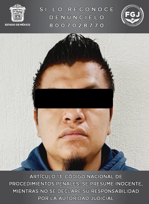 Agentes de la Fiscalía mexiquense y personal de CONAHO de igual manera dieron cumplimento a un mandamiento judicial contra Carlos Iván “N”, señalado por su probable participación en el ilícito de feminicidio en grado de tentativa. El 25 de diciembre de 2023 el ahora detenido habría intentado privar de la vida a una joven cuando viajaba a bordo de una motocicleta en la carretera México-Pachuca, colonia Lago Santa Rosa en el municipio de Tlalnepantla.