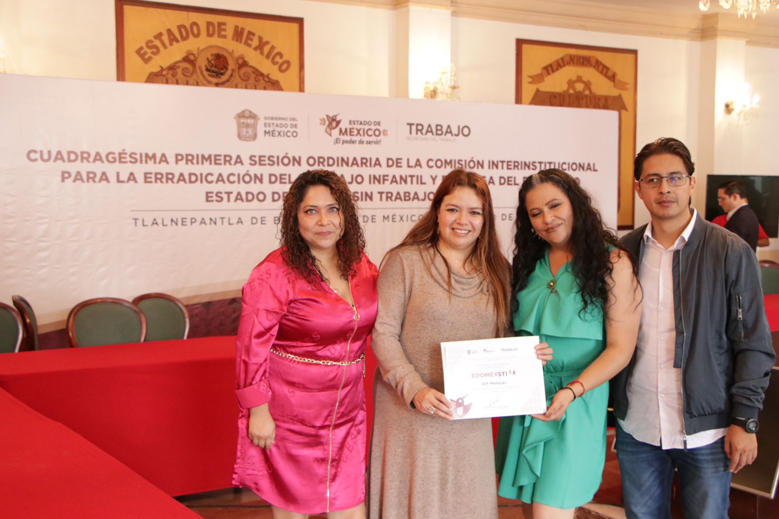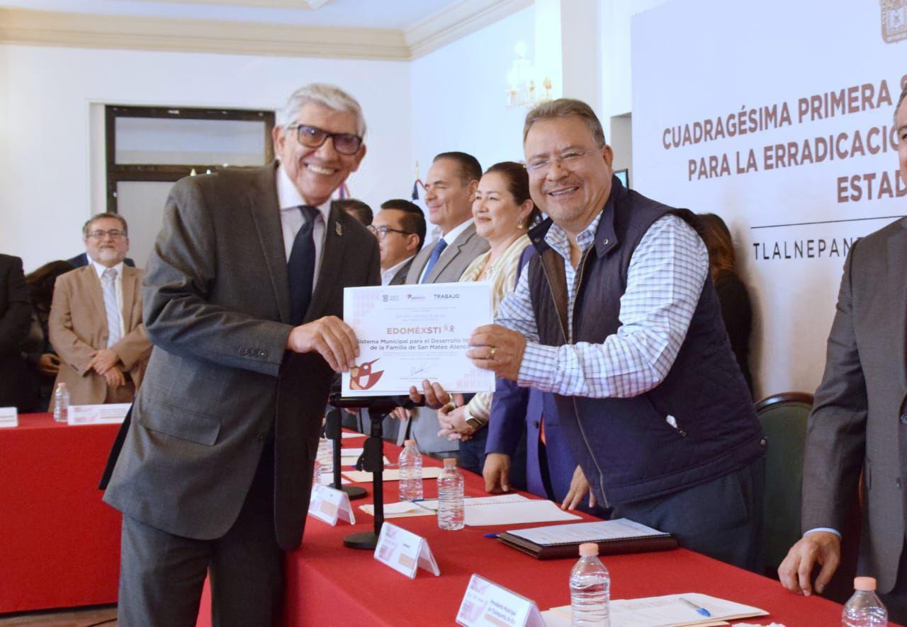 Tlalnepantla, Méx.- En el marco de la Cuadragésima Primera Sesión Ordinaria de la Comisión Internacional para la Erradicación del Trabajo Infantil, el Gobierno del Estado de México, representado por el Secretario del Trabajo, Norberto Morales Poblete y el Gobierno de Tlalnepantla, que encabeza Marco Antonio Rodríguez Hurtado, reconocieron a 84 empresas e instituciones con el distintivo “Sin Trabajo Infantil”.
