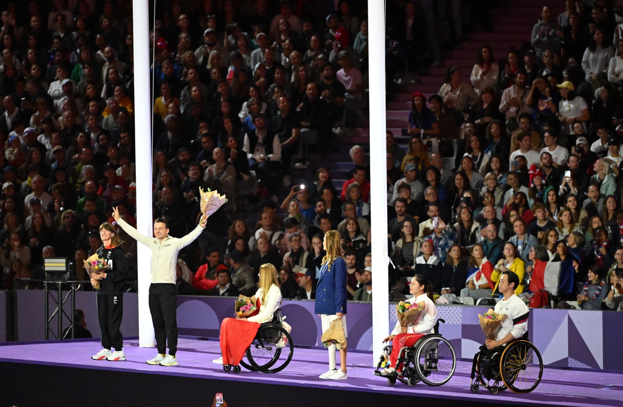 La ceremonia de clausura tuvo lugar en el Stade de France, donde retumbó en coro “la Marsellesa”, el himno francés, bajo una lluvia intermitente en la capital, donde estuvieron más de 60 mil personas presentes.
