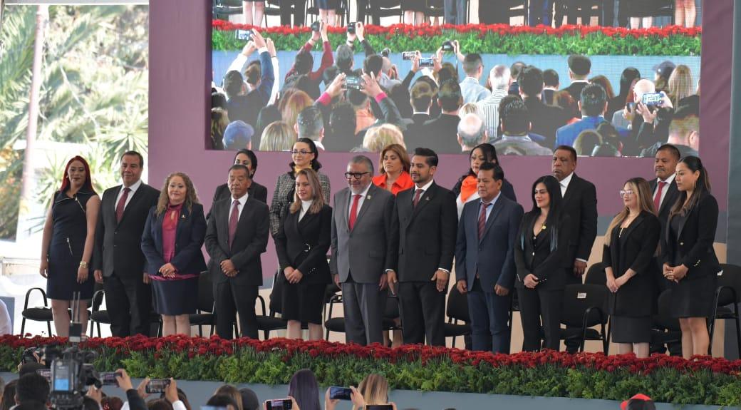 Nezahualcóyotl, Méx.- El alcalde Adolfo Cerqueda Rebollo rindió su tercer informe de gobierno, en el que destacaron los trabajos realizados en programas sociales, educación y seguridad en los últimos tres años, y luego de tomar protesta como presidente municipal para el periodo 2025-2027, anunció un ambicioso programa de bacheo y repavimentación, por medio del cual se rehabilitarán las más de 11 mil calles de la localidad, así como una fuerte coordinación con el Gobierno del Estado de México, encabezado por la maestra Delfina Gómez Álvarez, y la Presidenta de la República, Claudia Sheinbaum Pardo.