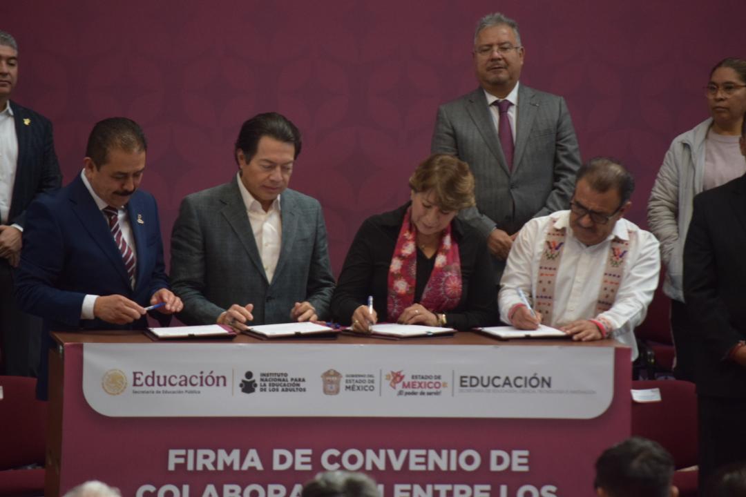 Toluca, Méx.- Con el objetivo de erradicar el analfabetismo en el Estado de México y en el país, el gobierno que encabeza la maestra Delfina Gómez Álvarez a través de la Secretaría de Educación, Ciencia, Tecnología e Innovación (SECTI); en coordinación con la Secretaría de Educación Pública (SEP) mediante el Instituto Nacional de la Educación para Adultos (INEA), firmaron el Convenio de Colaboración para la Alfabetización de Jóvenes y Adultos, que hace llegar el apoyo a 150 mil mexiquenses para este año, disminuyendo la analfabetización en la entidad.