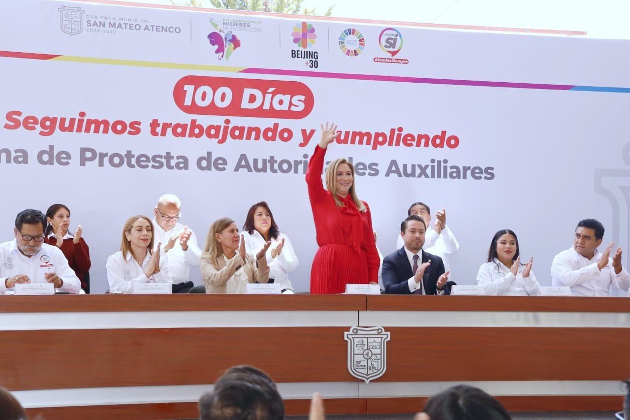 Agradeció el apoyo de los comisariados ejidales de San Mateo Tecoloapan y otras comunidades presentes en el evento. También destacó que se está realizando un estudio de las cuentas catastrales para identificar cuántas viviendas se encuentran en situación irregular.