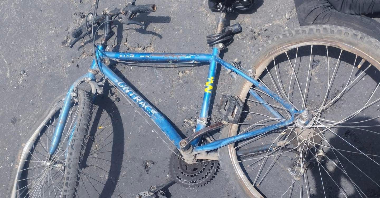 Es del estado en el que quedó una bicicleta después de que el conductor de un torton arrollara a una joven en avenida Las Torres y Comonfort en los límites de Metepec y Toluca, una tragedia más provocada por la mafia transportista que sigue haciendo lo que se le pega la gana de la mano de impunidad y la corrupción.