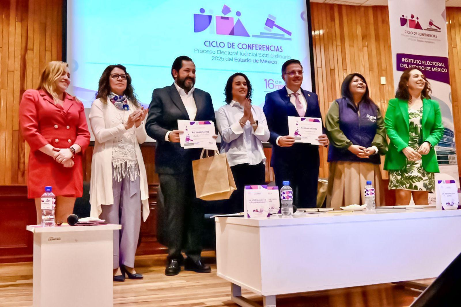 Ante Amalia Pulido Gómez, consejera presidenta del IEEM, y Fernando Díaz Juárez, presidente del Poder Judicial, Francisco Vázquez destacó que la reforma no es un trámite, sino una exigencia social que impacta directamente en la democracia.