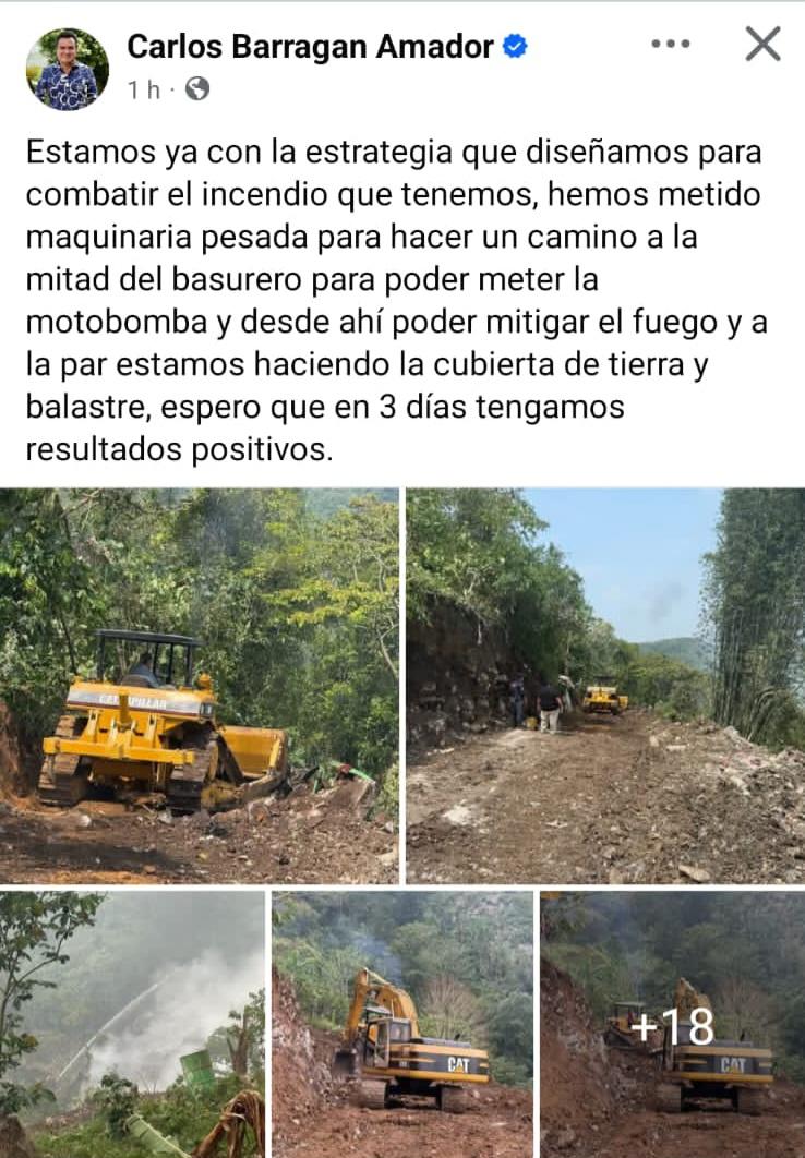Incluso, el actual presidente municipal, el ex priísta y neomorenista, Carlos Barragán Amador, reconoció que el fuego está fuera de control y se genera debajo de los desechos: https://desdepuebla.com/2025/05/19/ups-tardaran-meses-en-apagar-el-incendio-en-basurero-clandestino-de-xicotepec-el-fuego-se-encuentra-por-debajo-de-la-basura-informo-barragan/
