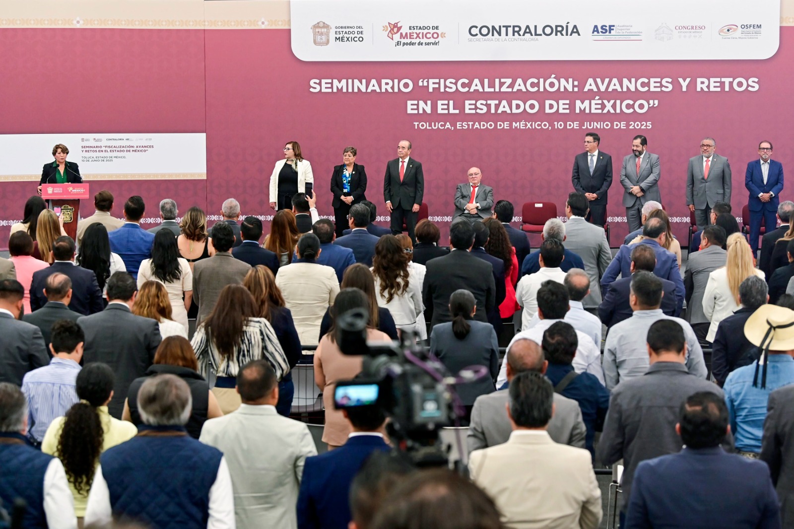 Toluca, Méx.- Teniendo como sede el Centro de Convenciones de Toluca, la gobernadora Delfina Gómez Álvarez inauguró el seminario “Fiscalización: avances y retos en el Estado de México”, donde resaltó que en el EdoMéx, la fiscalización es el pilar de la confianza ciudadana y un compromiso con el bienestar del pueblo.