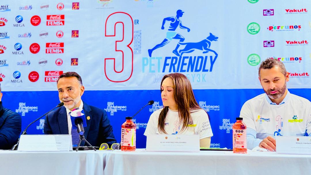 Metepec, Méx.- En un ambiente de entusiasmo y compromiso social, el gobierno de Metepec anunció este martes la realización de la 3ra Carrera Pet Friendly Metepec 5 y 3K, una actividad deportiva y familiar que busca promover el cuidado y la inclusión de los animales de compañía.