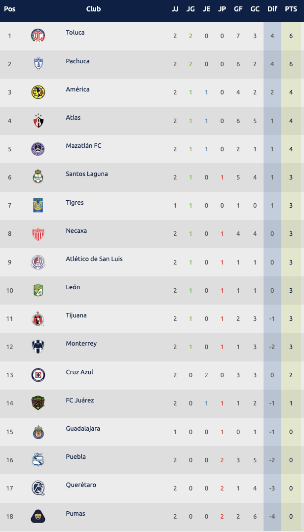 Con este resultado, Necaxa sumó sus primeros tres puntos de la temporada, mientras los Gallos Blancos siguen sin sumar en la presente campaña.