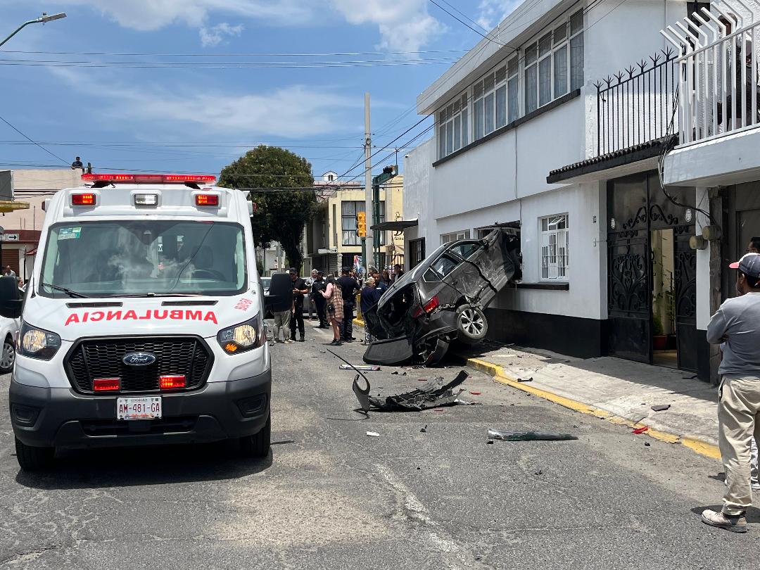 La tomé ayer en la esquina de Plutarco González y Felipe Villanueva en Toluca, donde se registró un fuerte accidente, que provocó que una camioneta entrará prácticamente a una casa y se llevará a otro automóvil que estaba estacionado, dejando como saldo de cinco heridos y graves daños materiales.