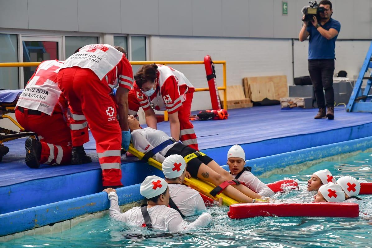 Toluca, Méx.– La Cruz Roja Mexicana lanzó un llamado a la prevención de accidentes por ahogamiento en albercas, lagunas y depósitos de agua, al realizar un simulacro de rescate acuático con 25 especialistas de las delegaciones Estado de México y Ciudad de México.