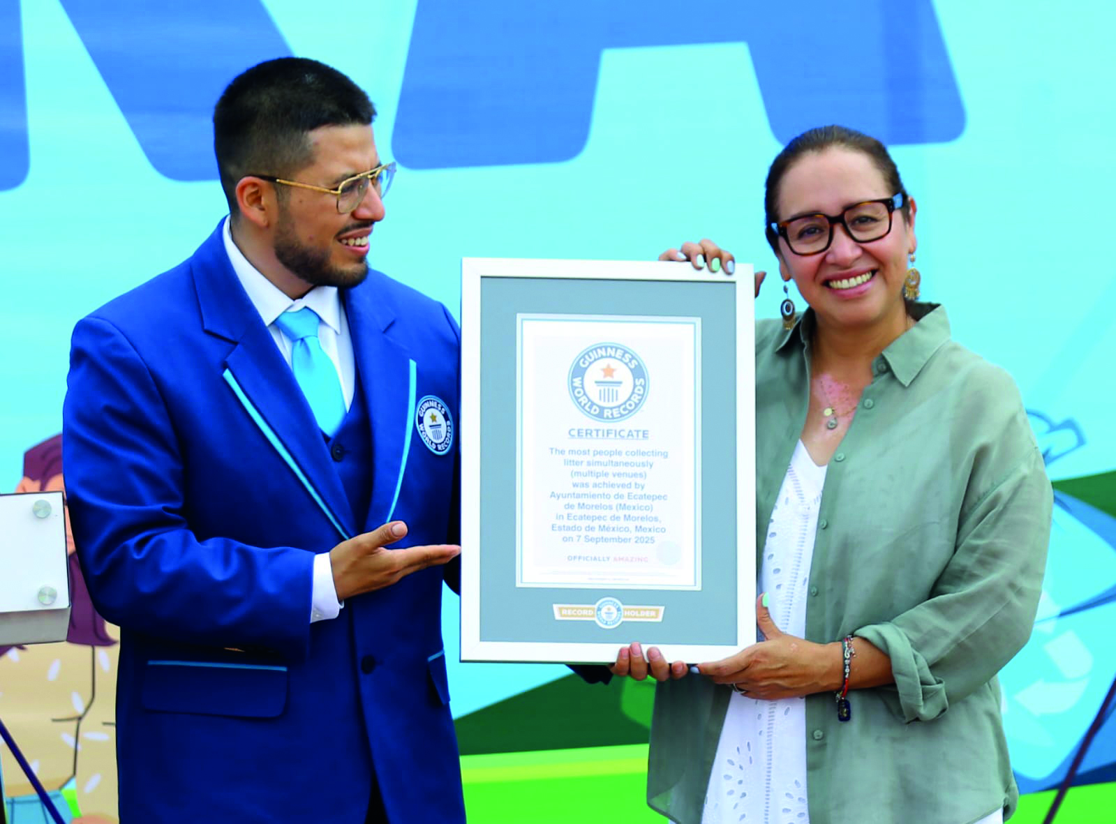Arista Rueda reconoció la organización de autoridades y habitantes de Ecatepec para obtener el citado récord, que abatió la cifra alcanzada en Japón de más de 146 mil personas recogiendo basura. “A partir de hoy ustedes son oficialmente asombrosos”, dijo.