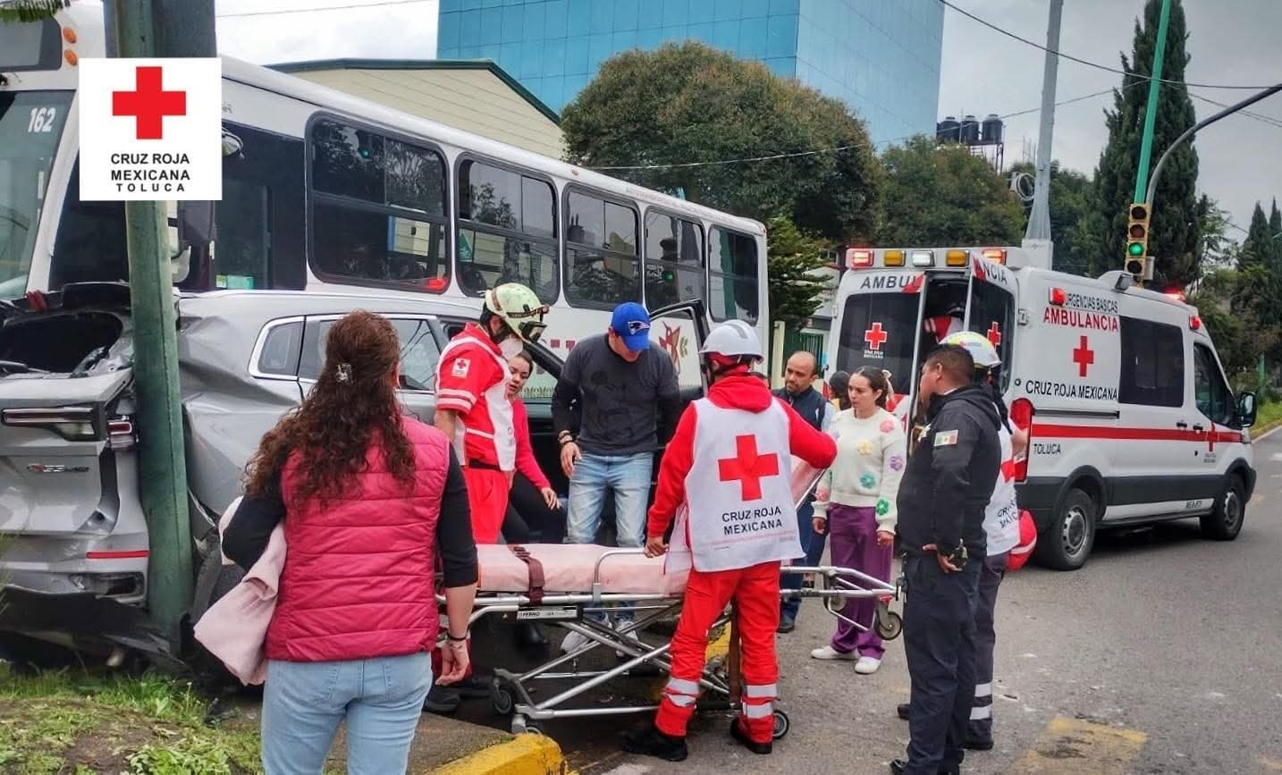 Al lugar acudieron dos ambulancias de la Cruz Roja de Toluca, cuyos paramédicos brindaron atención médica prehospitalaria a cuatro personas, entre ellas una menor de edad.