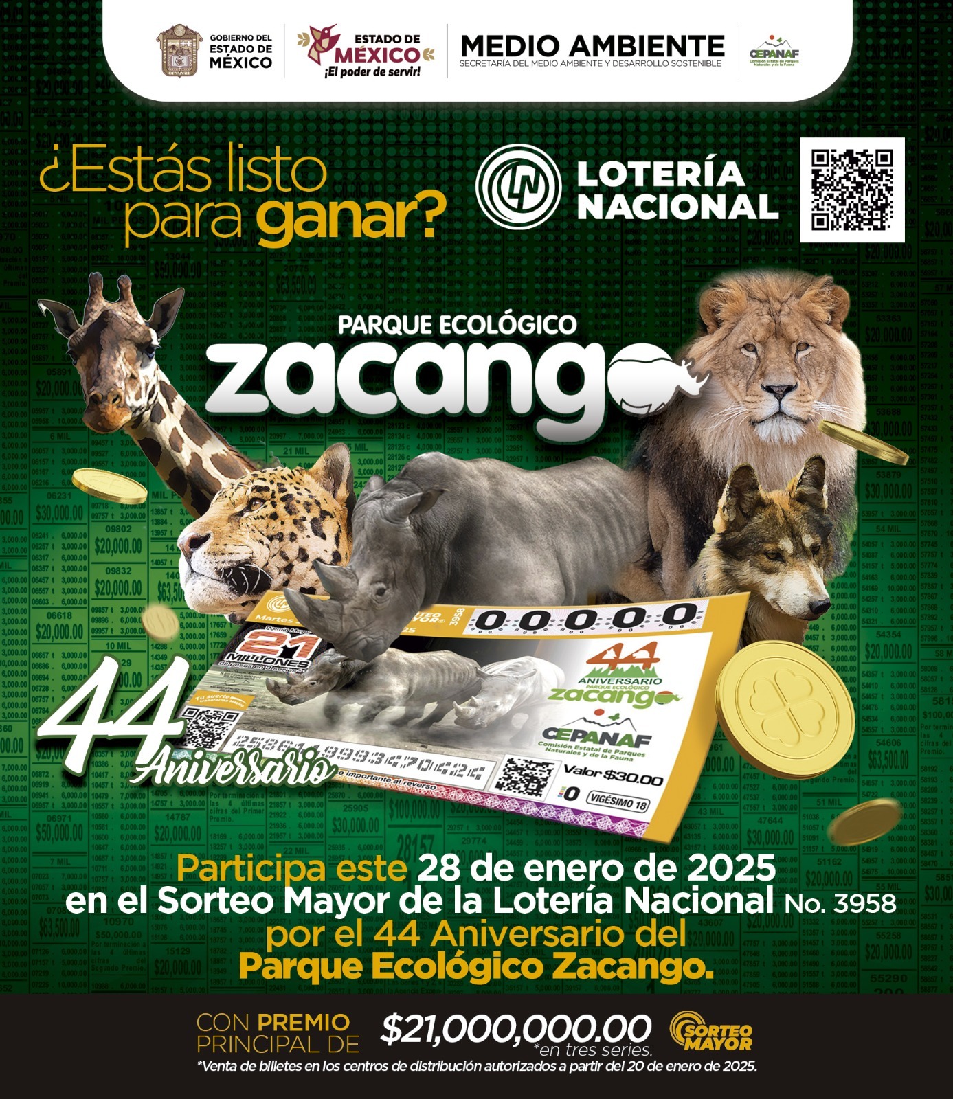 Celebra Parque Ecológico Zacango su 44 aniversario con billete de la Lotería Nacional