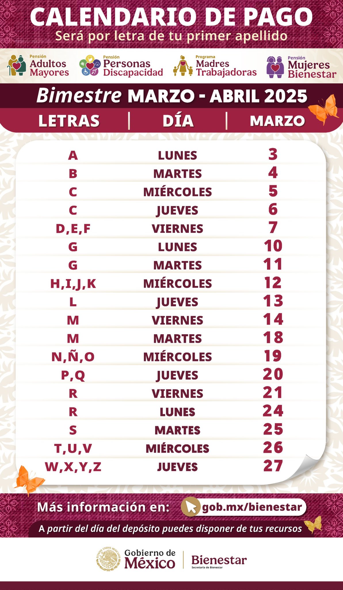 Comienza dispersión del pago de Pensiones y Programas para el Bienestar de marzo