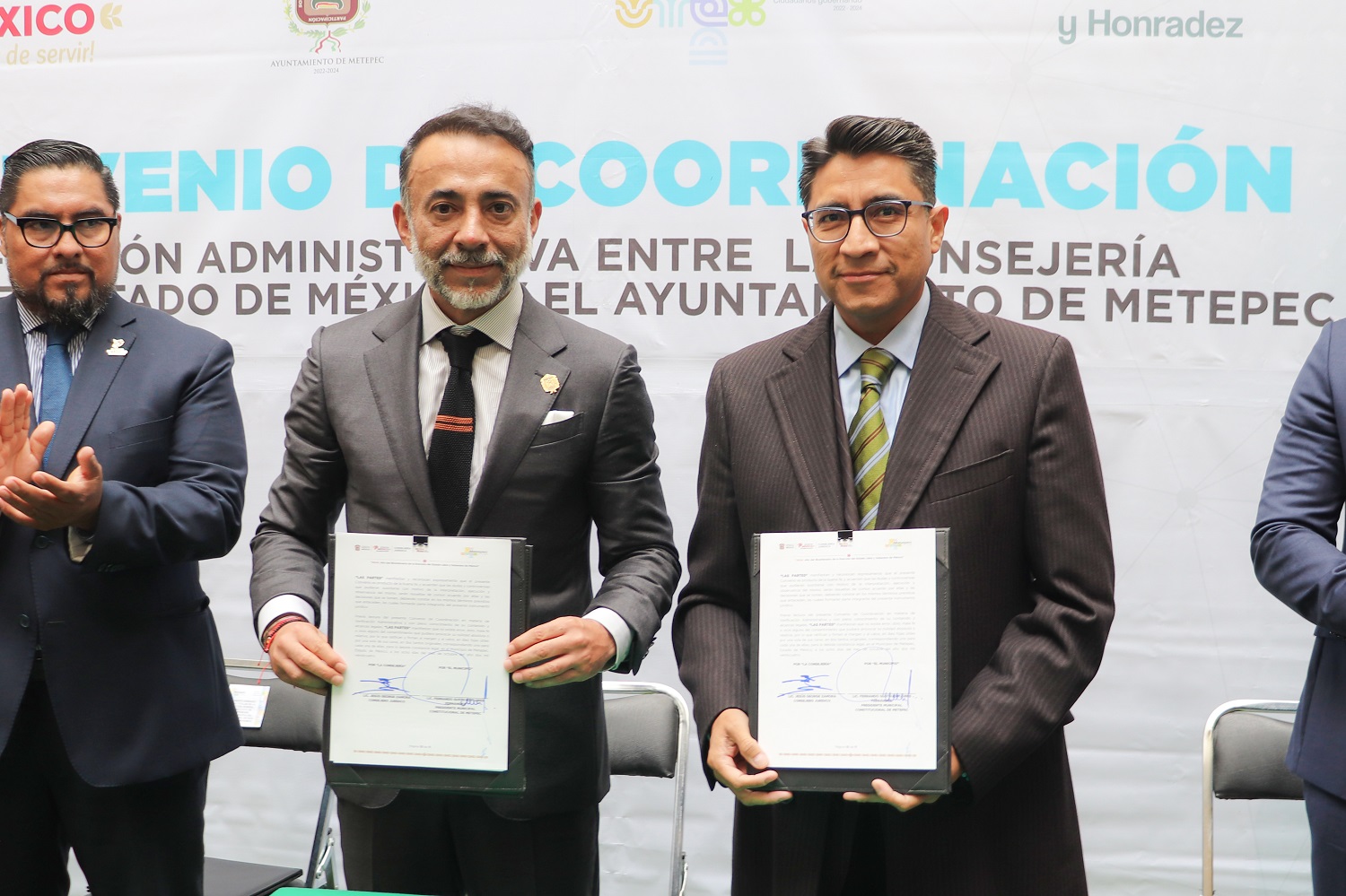Metepec, Méx.- Jesús George Zamora, Consejero Jurídico del Estado de México, y Fernando Fl [...]